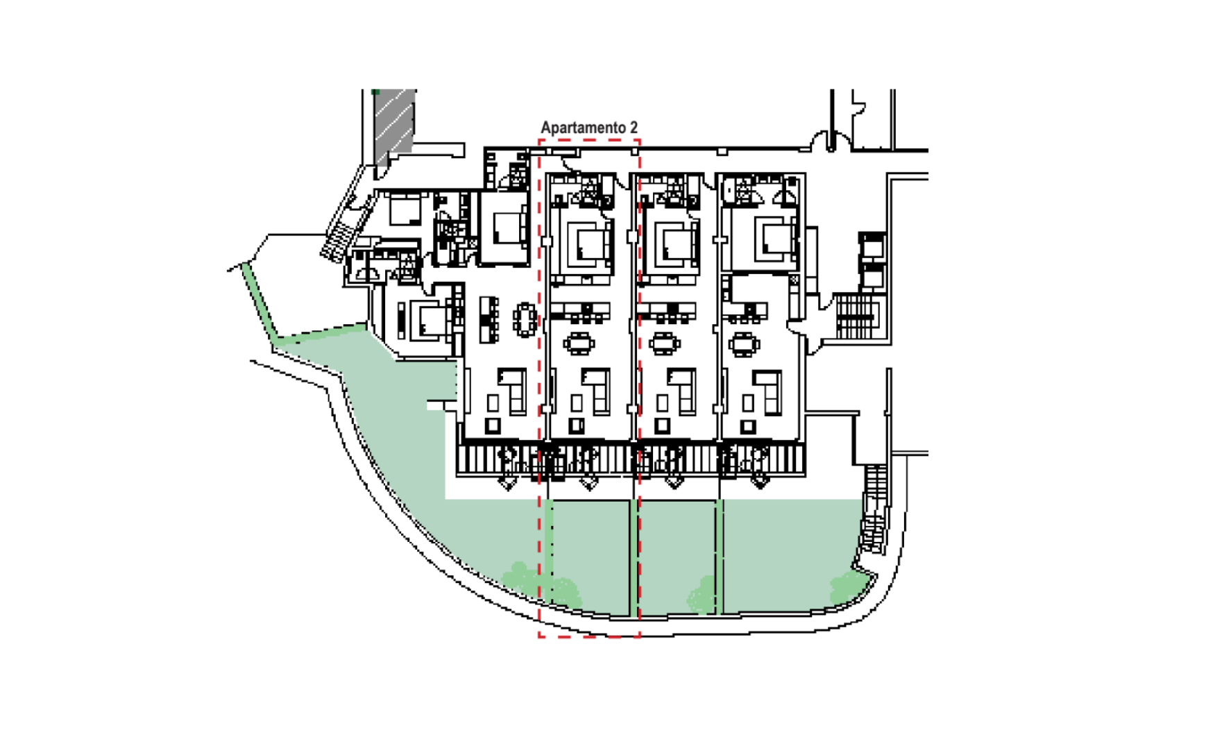 Lot de 4 appartements de standing (possibilité d’achat séparé). Consultez le plan au format PDF en cliquant ici.