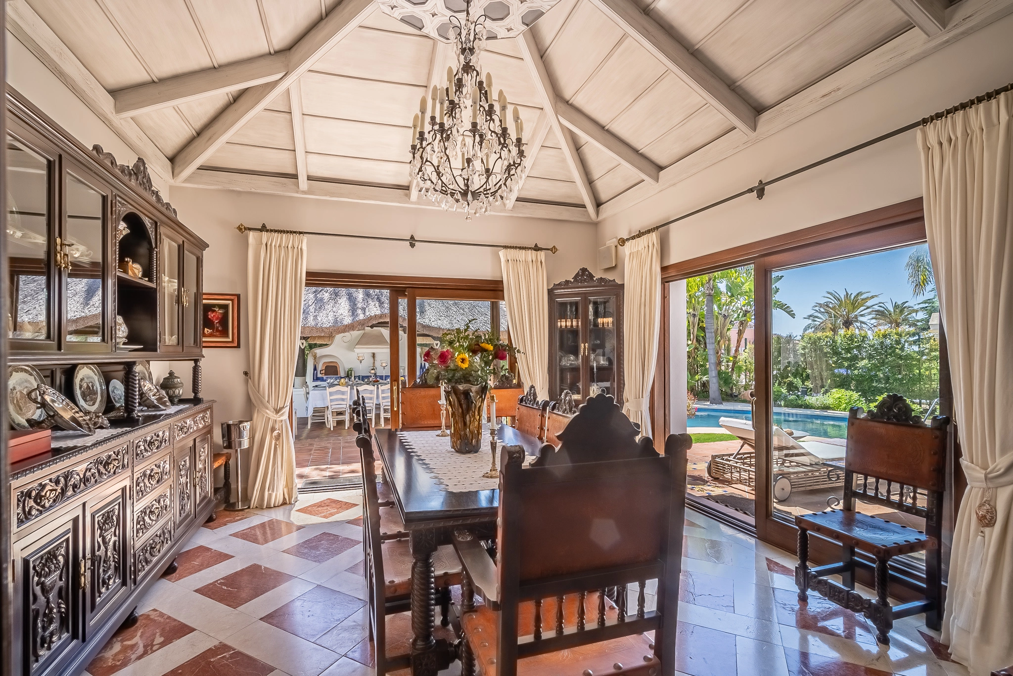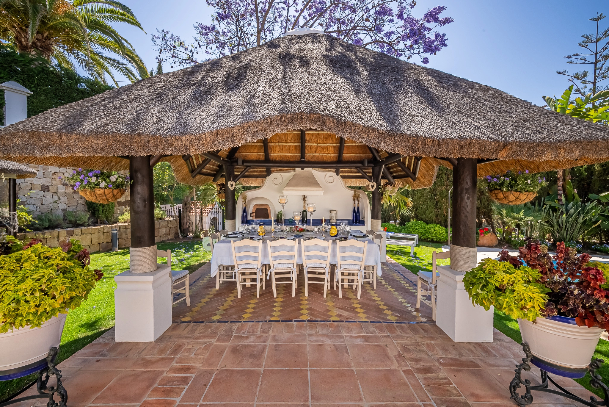 Magnifique villa de style colonial sur le plus belles plage de Marbella, dans une urbanisation privée avec sécurité 24h/24. Située à quinze minutes à pied des plages de sable fin et des belles dunes, avec 7 chambres et 7 salles de bains. Cette maison est un lieu idéal pour la famille et les amis, offrant des espaces barbecue fermés avec des pergolas africaines et entourés de terrasses, jardins et piscines. La maison offre tous types d’environnements de repos et de détente tels que jacuzzis, sauna, bain turc, cinéma, bar, bibliothèque et autres commodités.