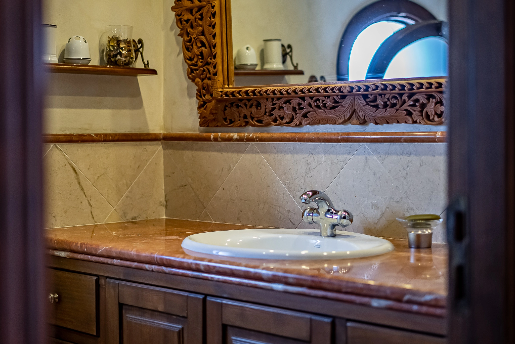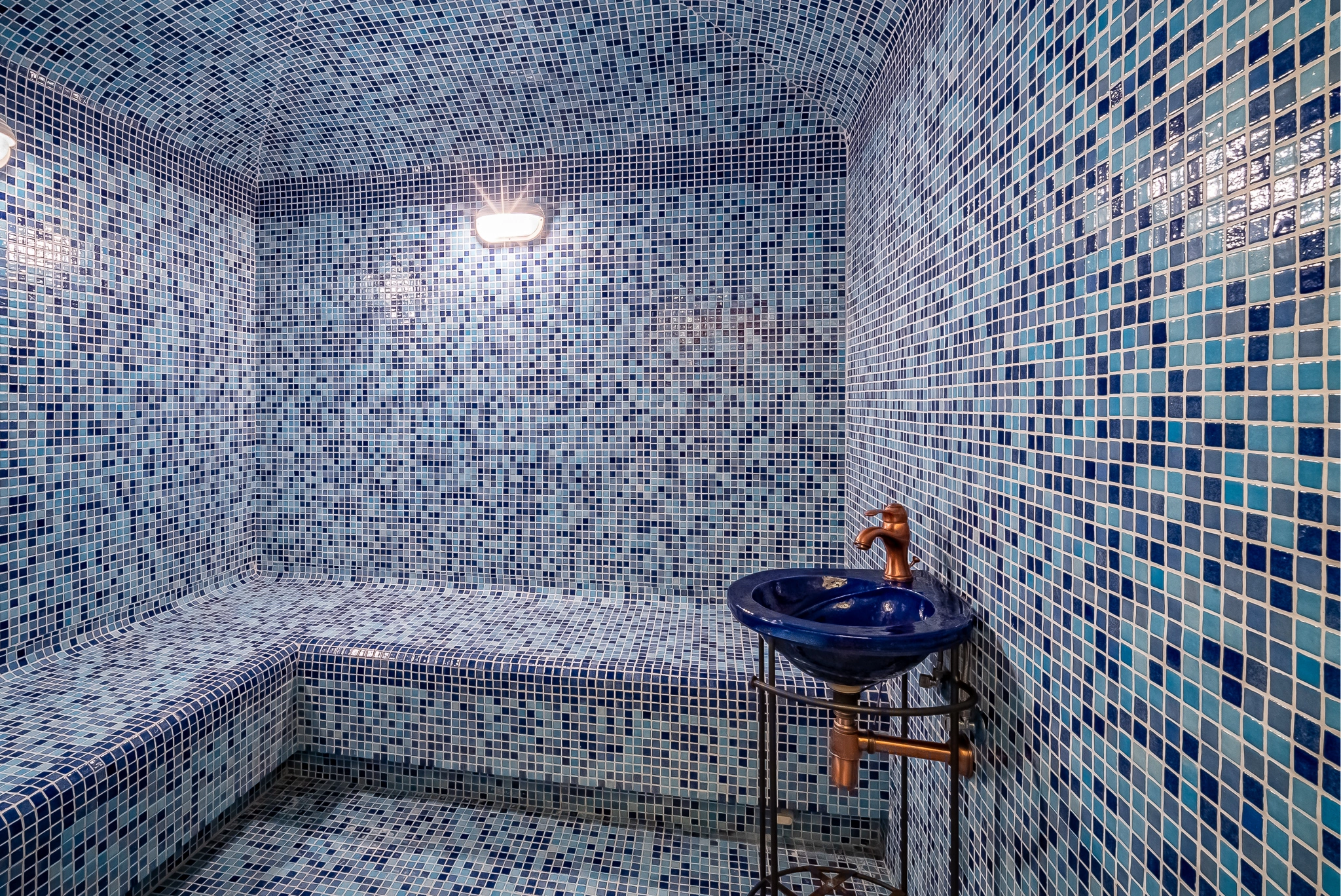 Stuc dans la salle de bain principale. Céramique décorative dans les salles de bains du sous-sol.